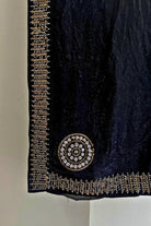 - Design/Embroidery: Intricate border work combining Gold zari in a V-stitch pattern and scattered small White beads or pearls.
