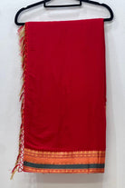 Design: Features a clean, solid-colored body for a minimalist appeal, beautifully framed by a woven geometric Zari border.