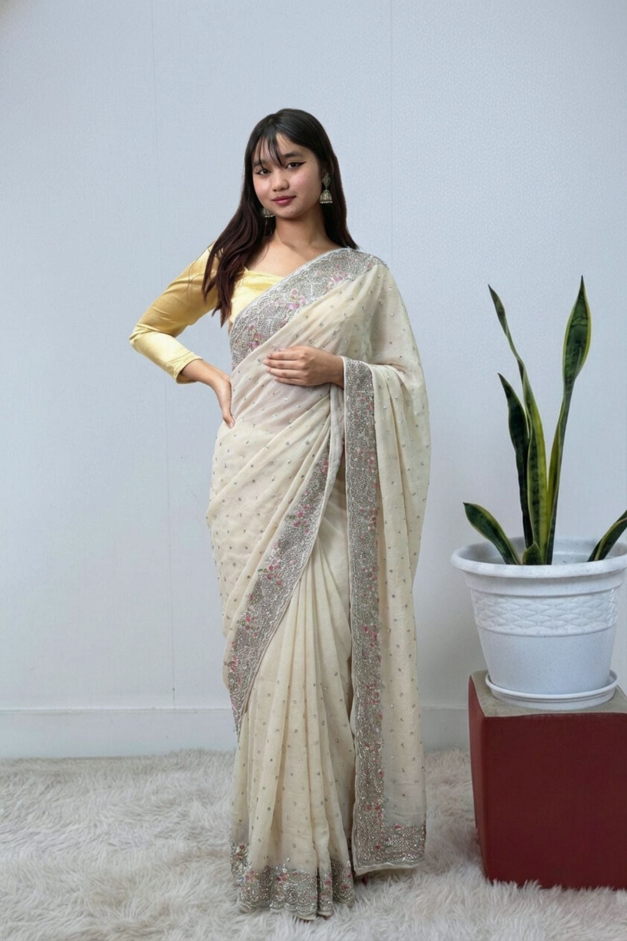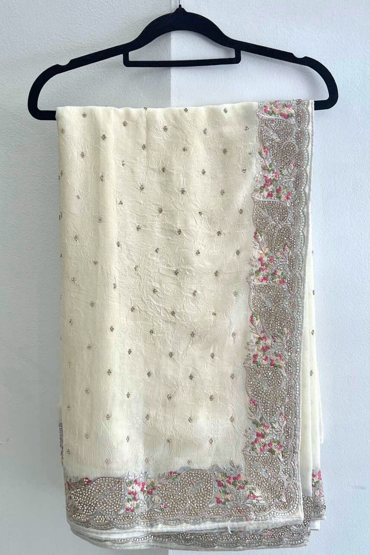 Off-White Saree Floral Border