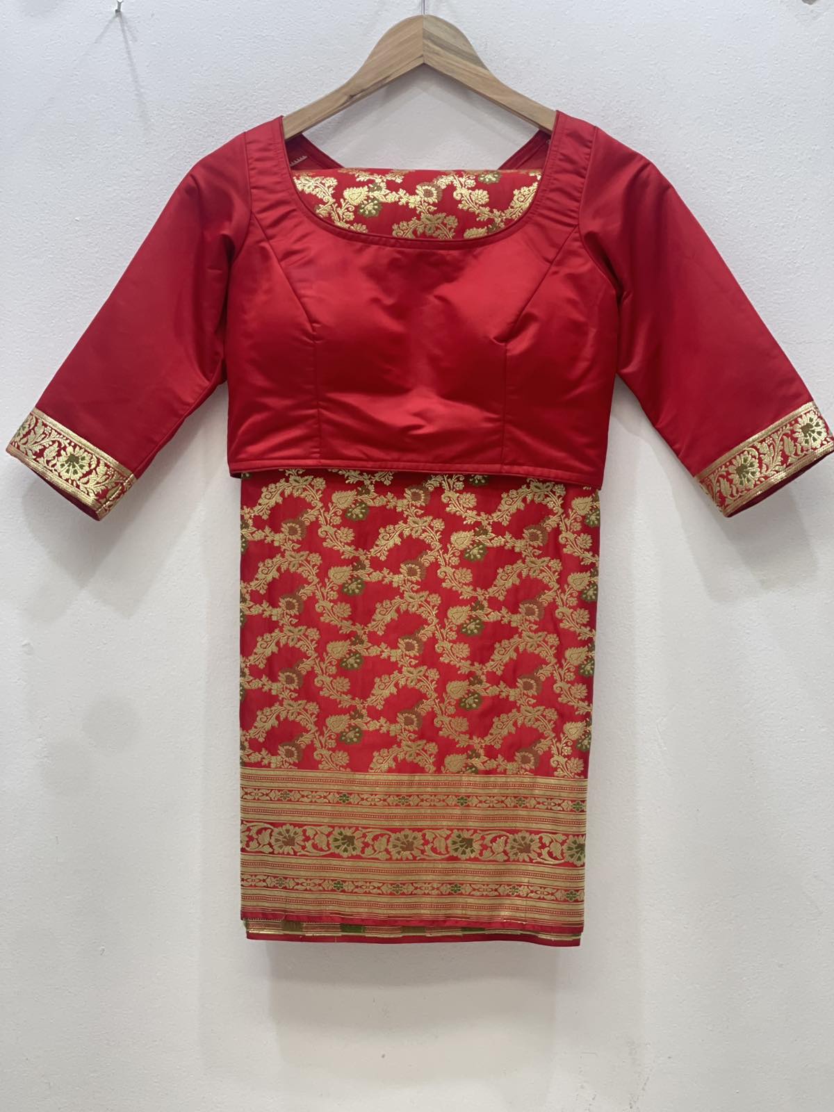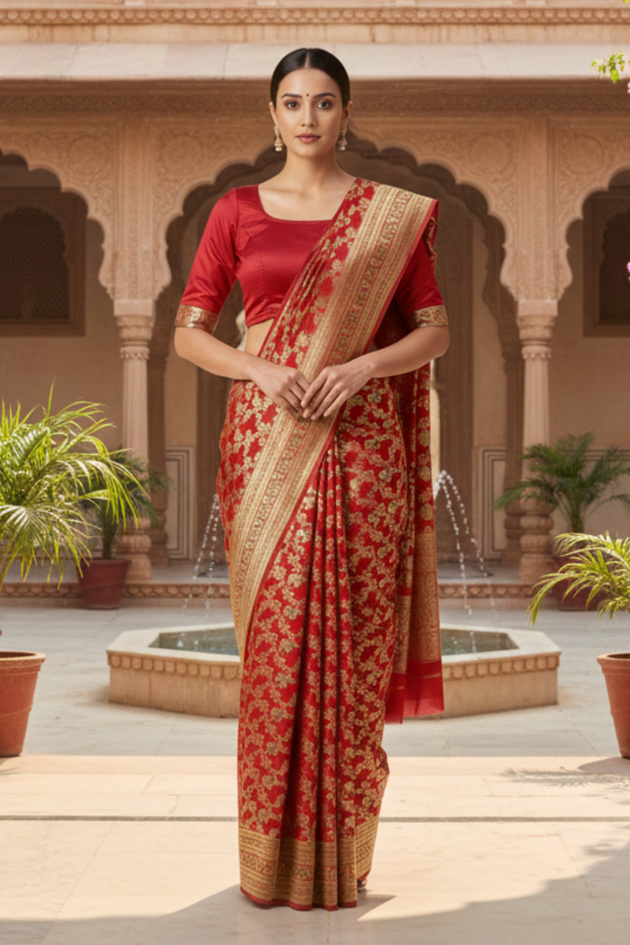Red Banarasi Silk Saree With Blouse