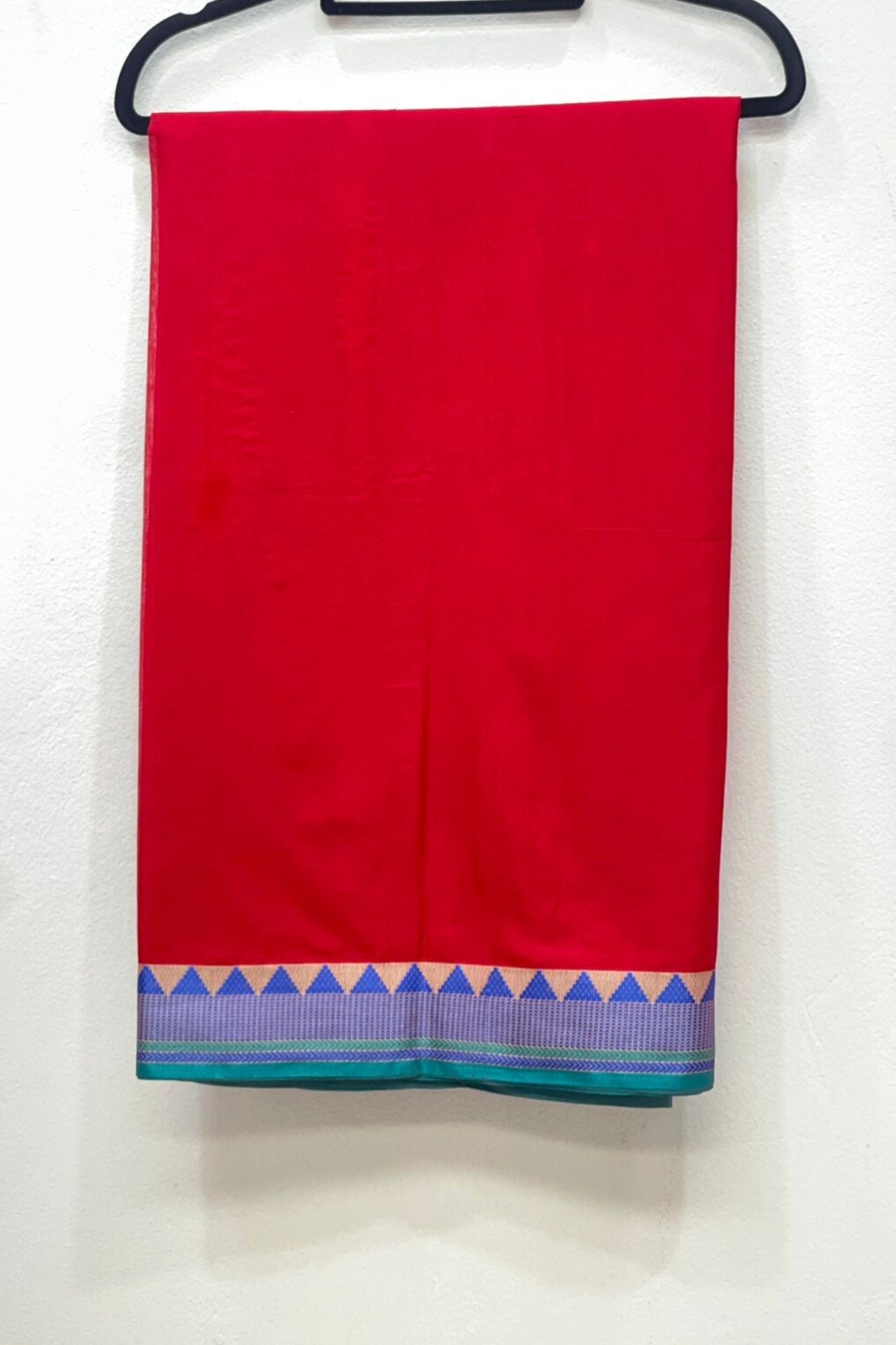Red Cotton Saree With Blue Border