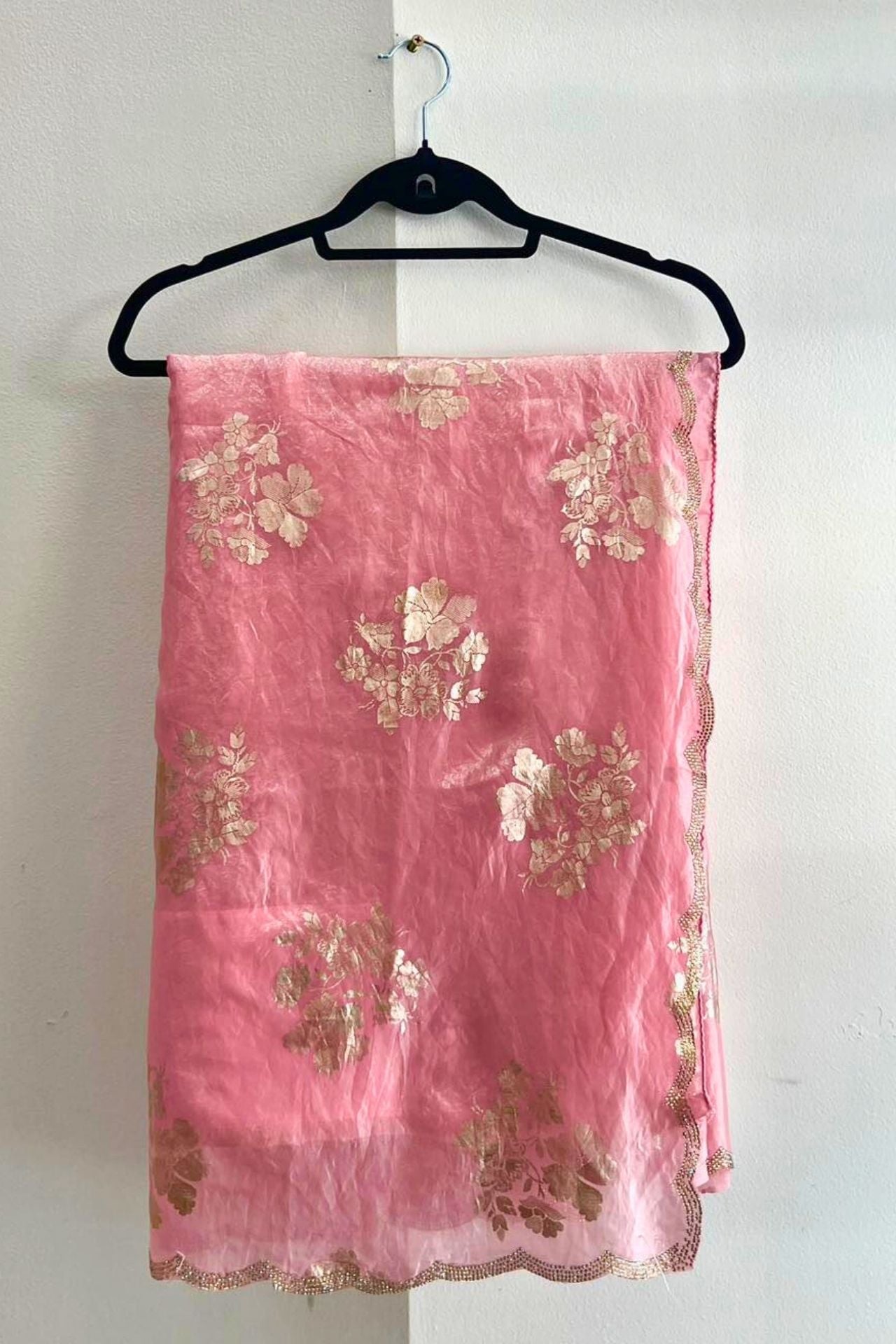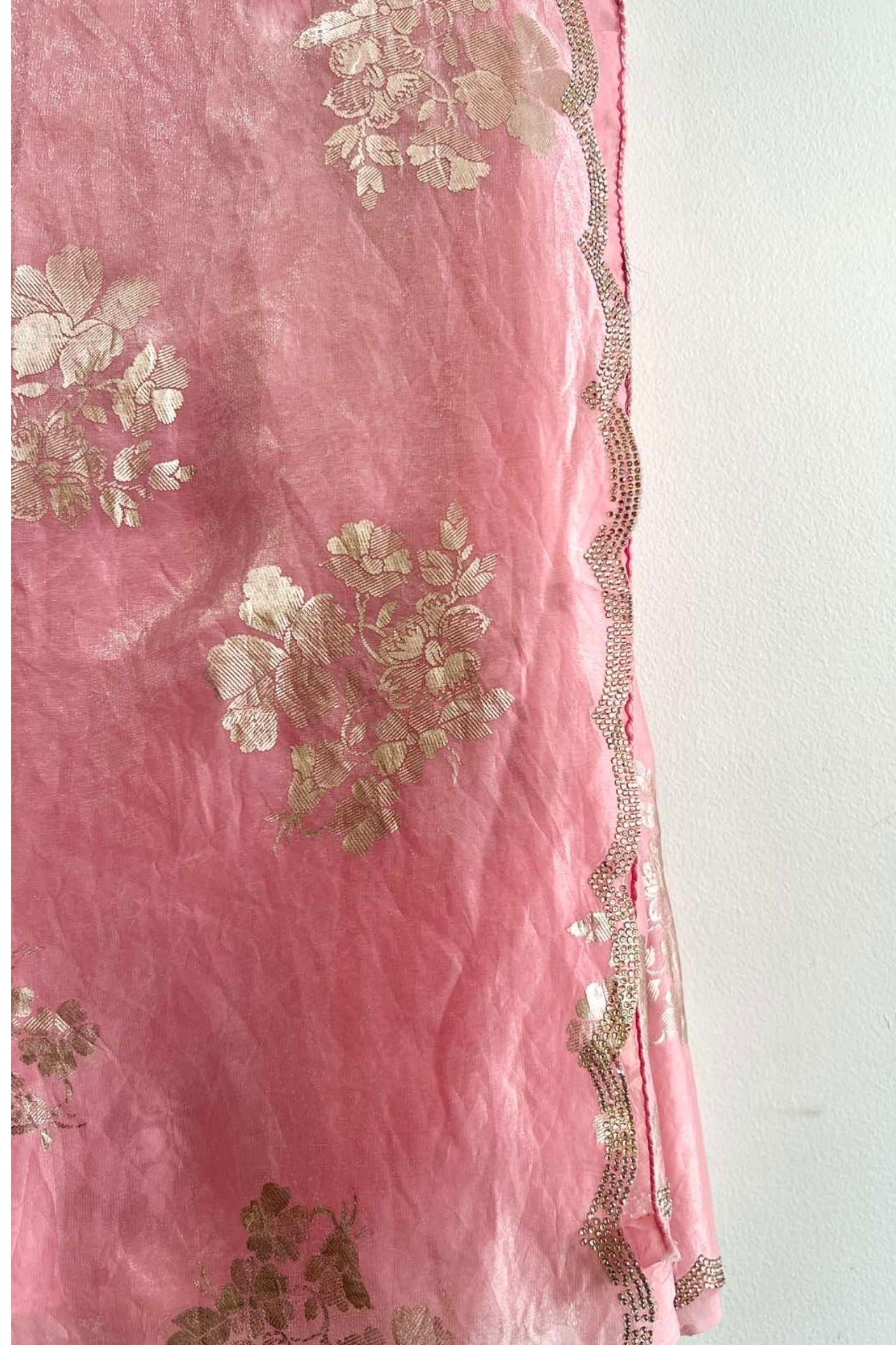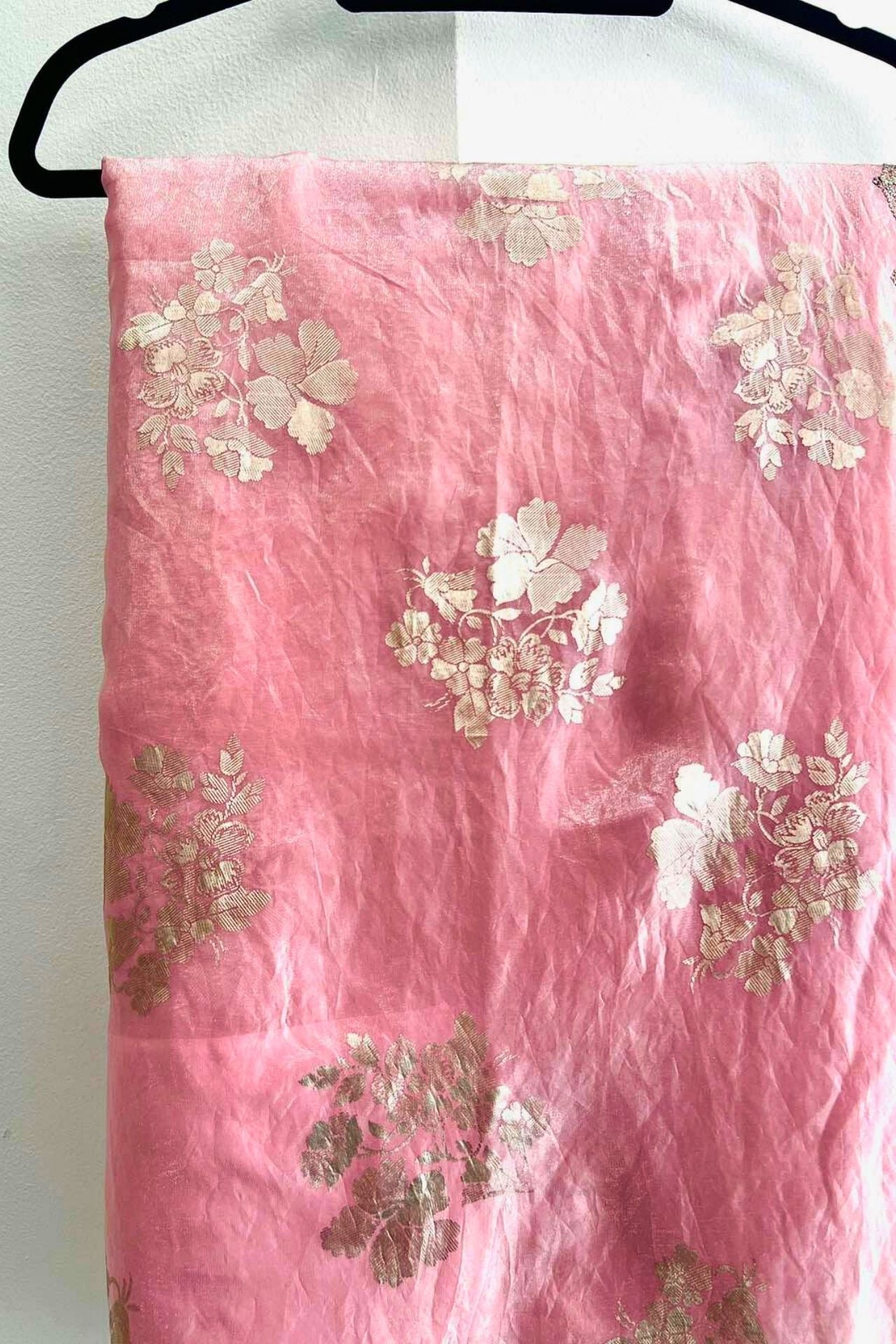 Design: All-over bold, scattered gold zari woven floral brocade motifs.