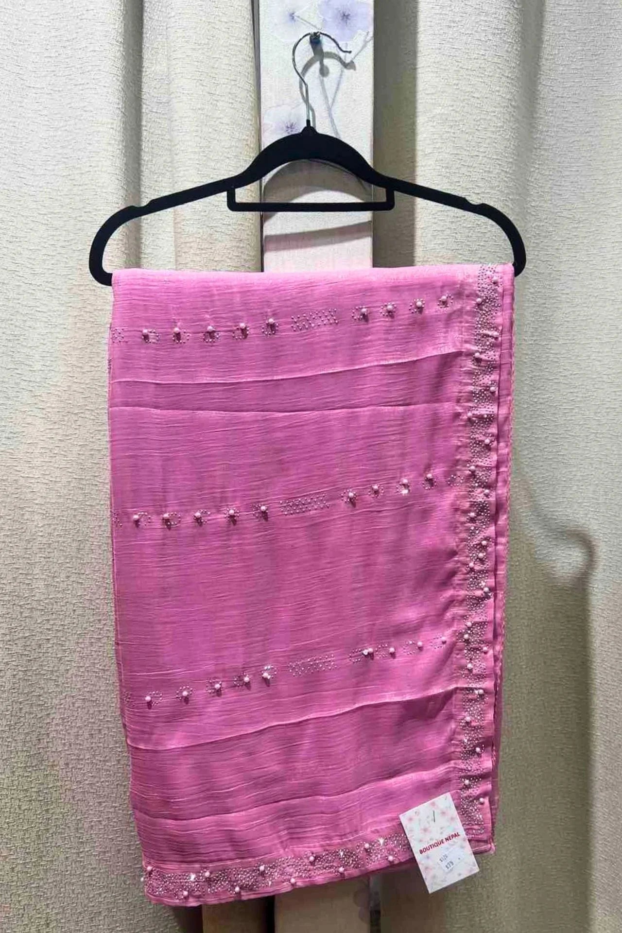 Pink Pearl-Embellished Saree