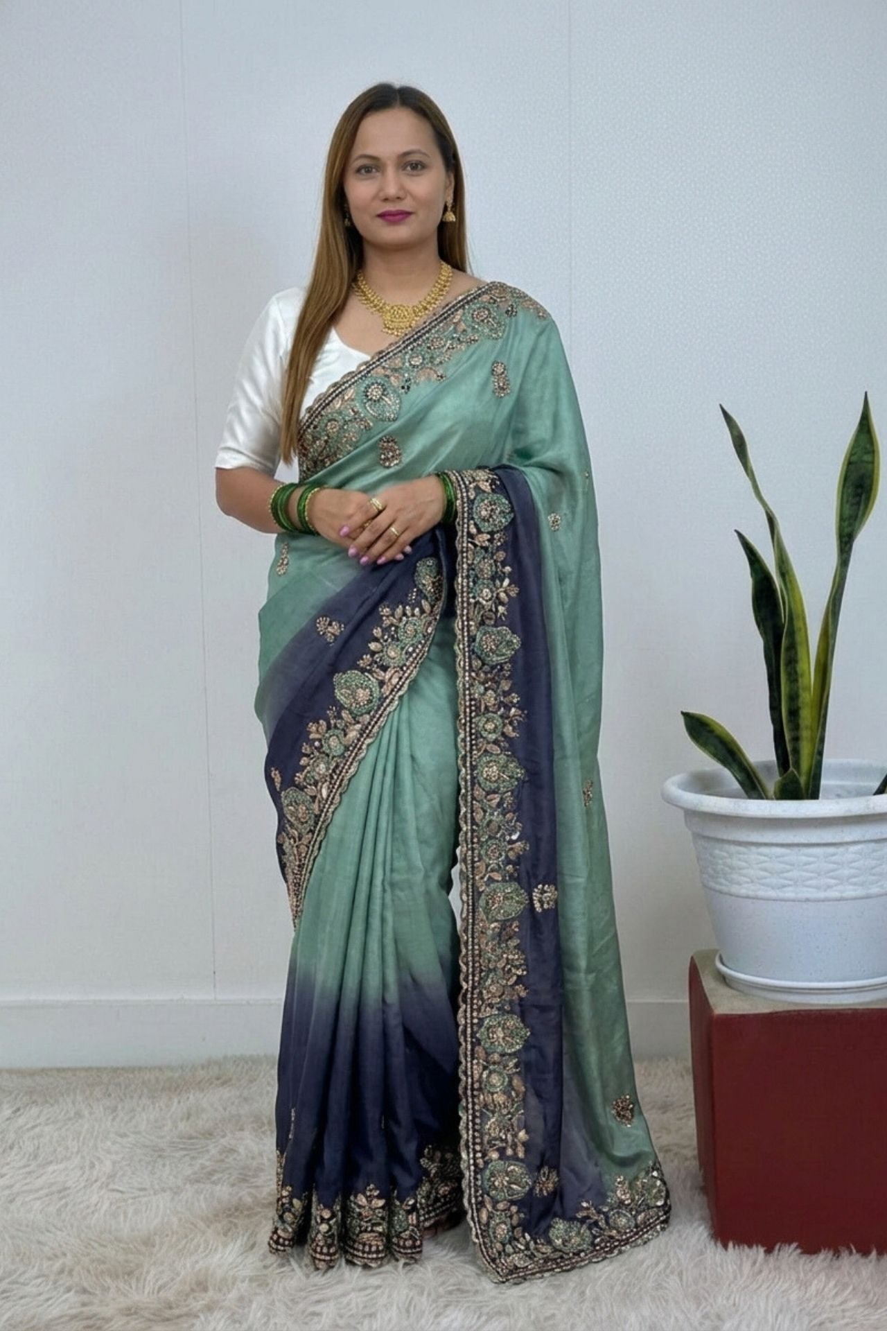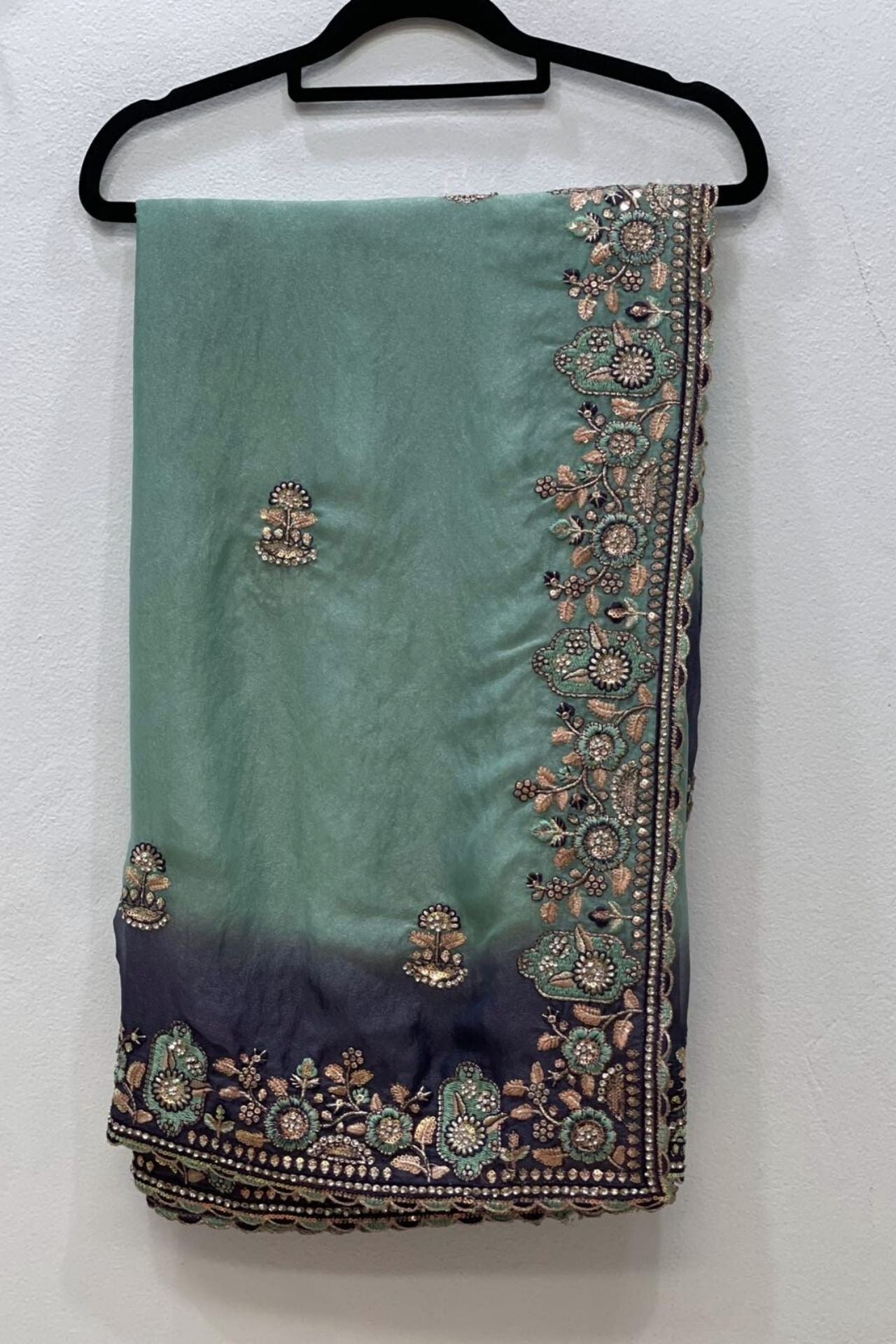 Sage Green Silk Ombre Saree