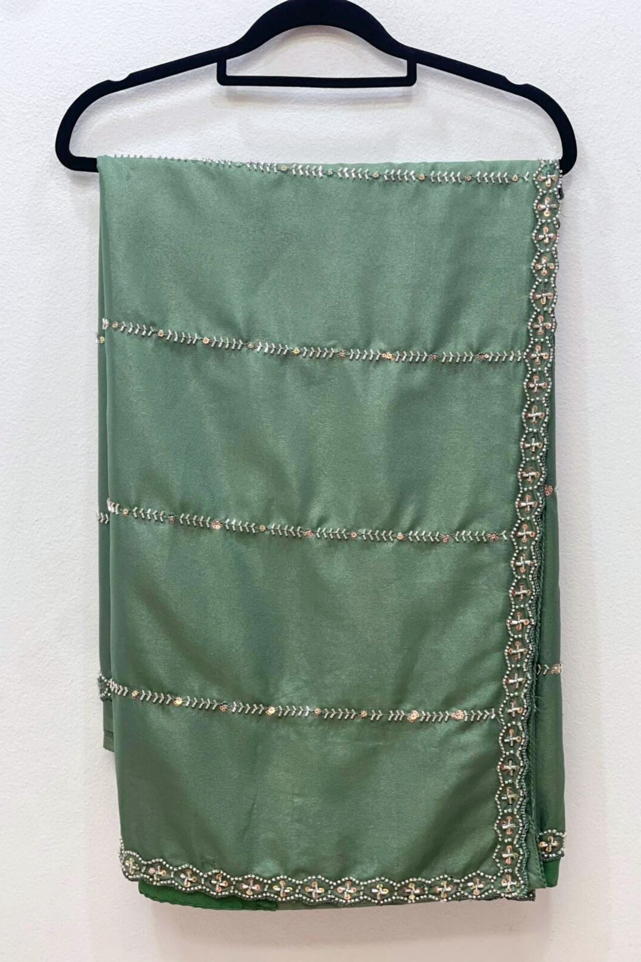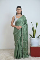 Sage Green Silk Saree Stone Work
