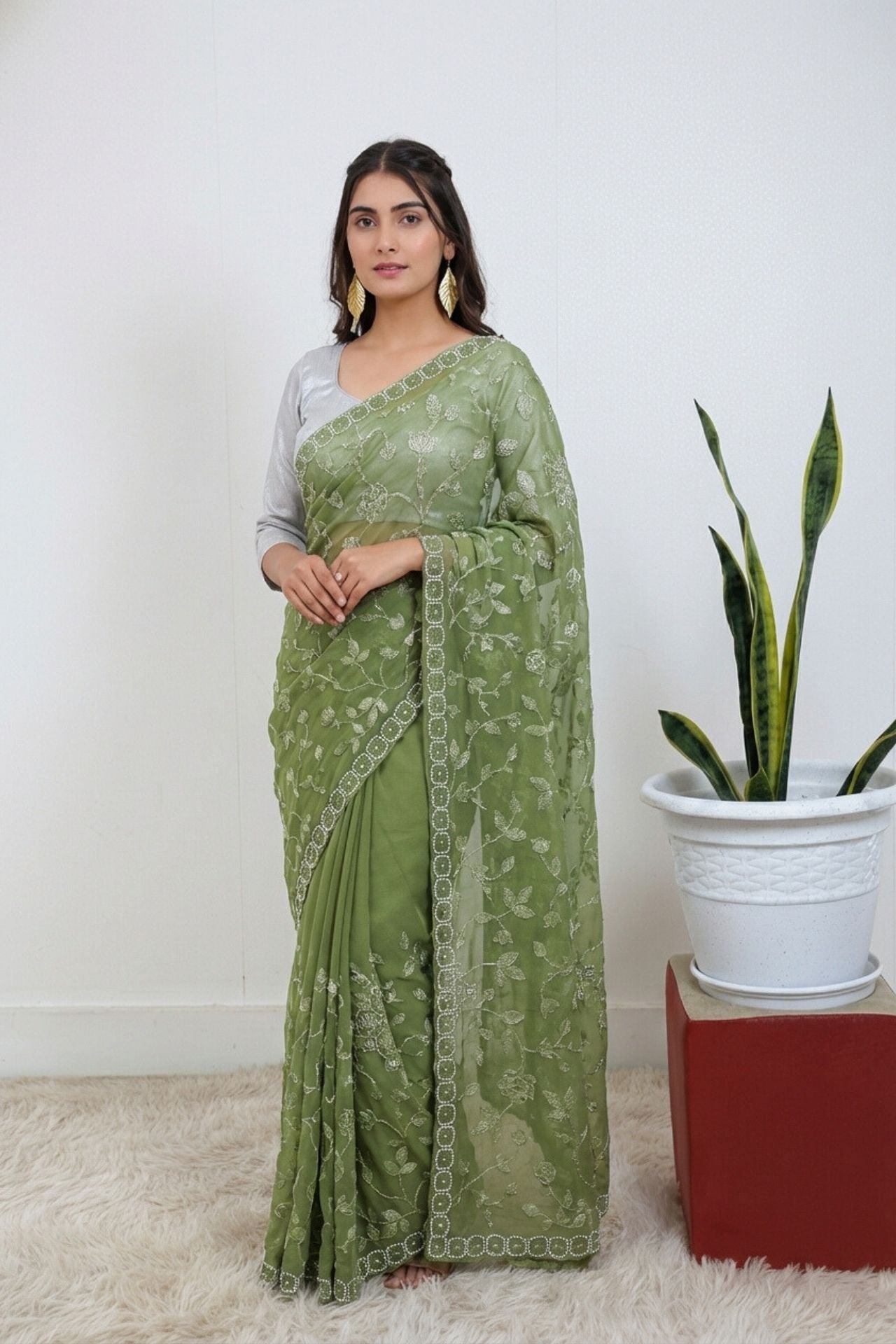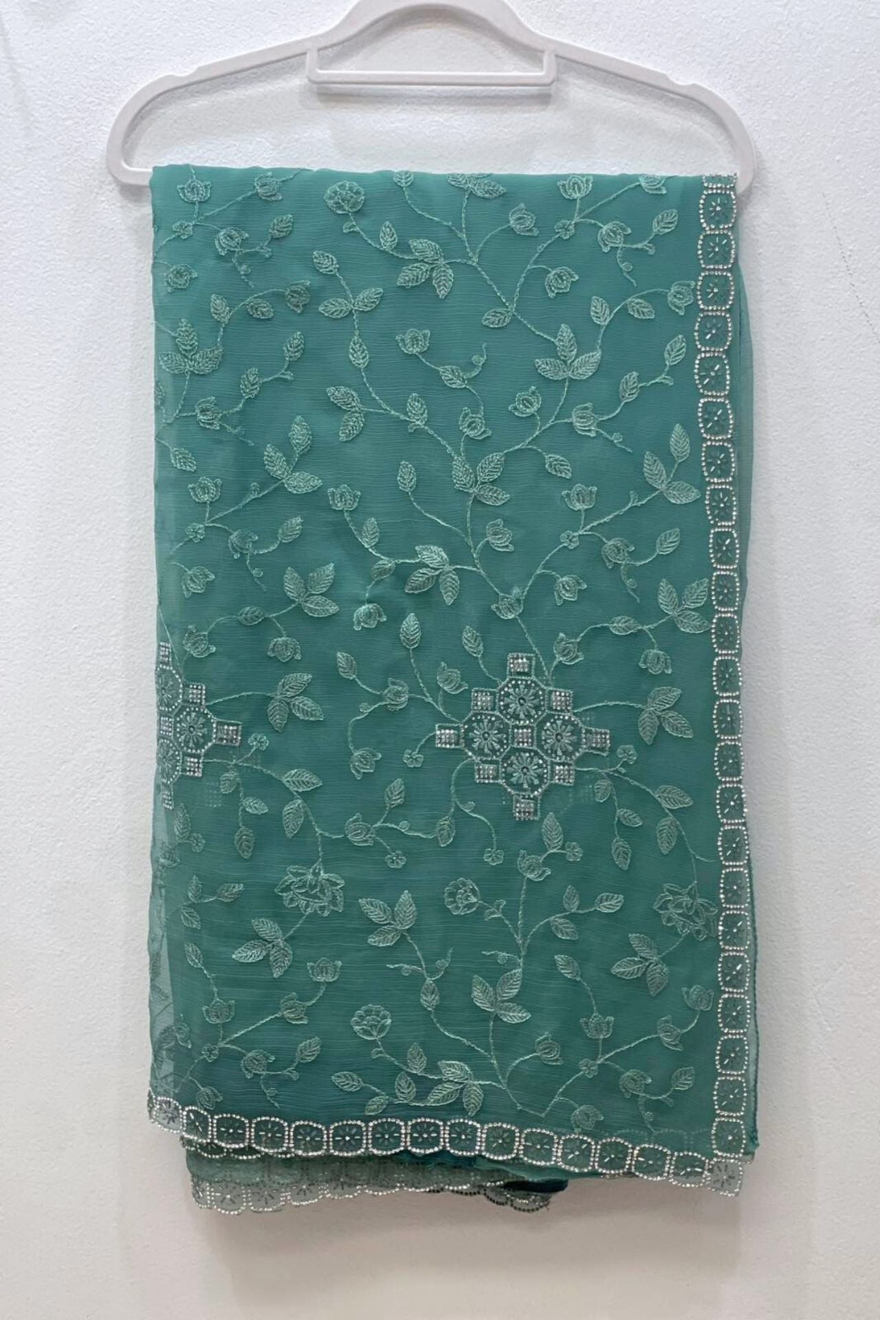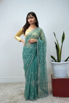 Sea Green Georgette Saree Mirror Work