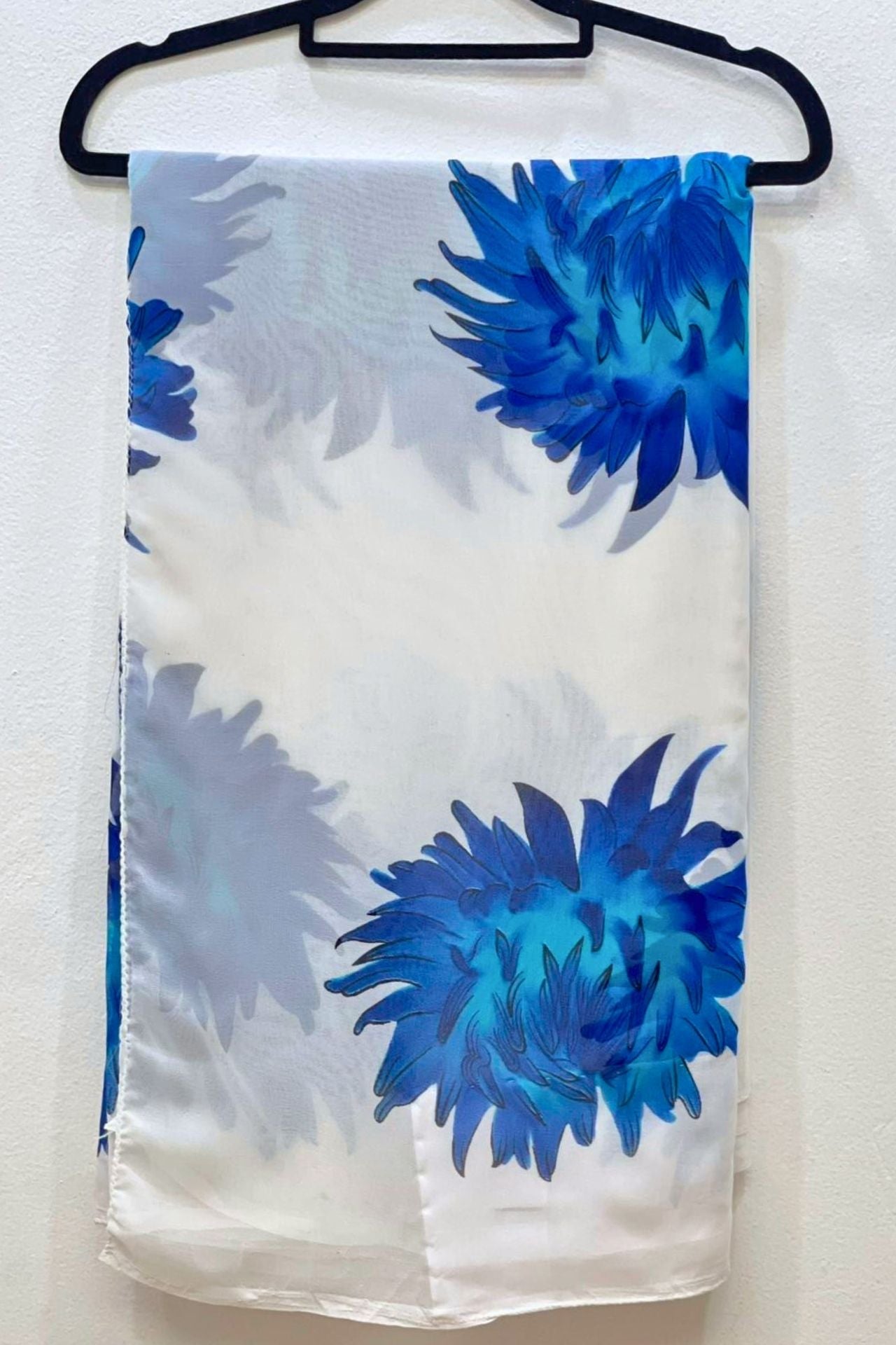 White Chiffon Saree With Floral Print