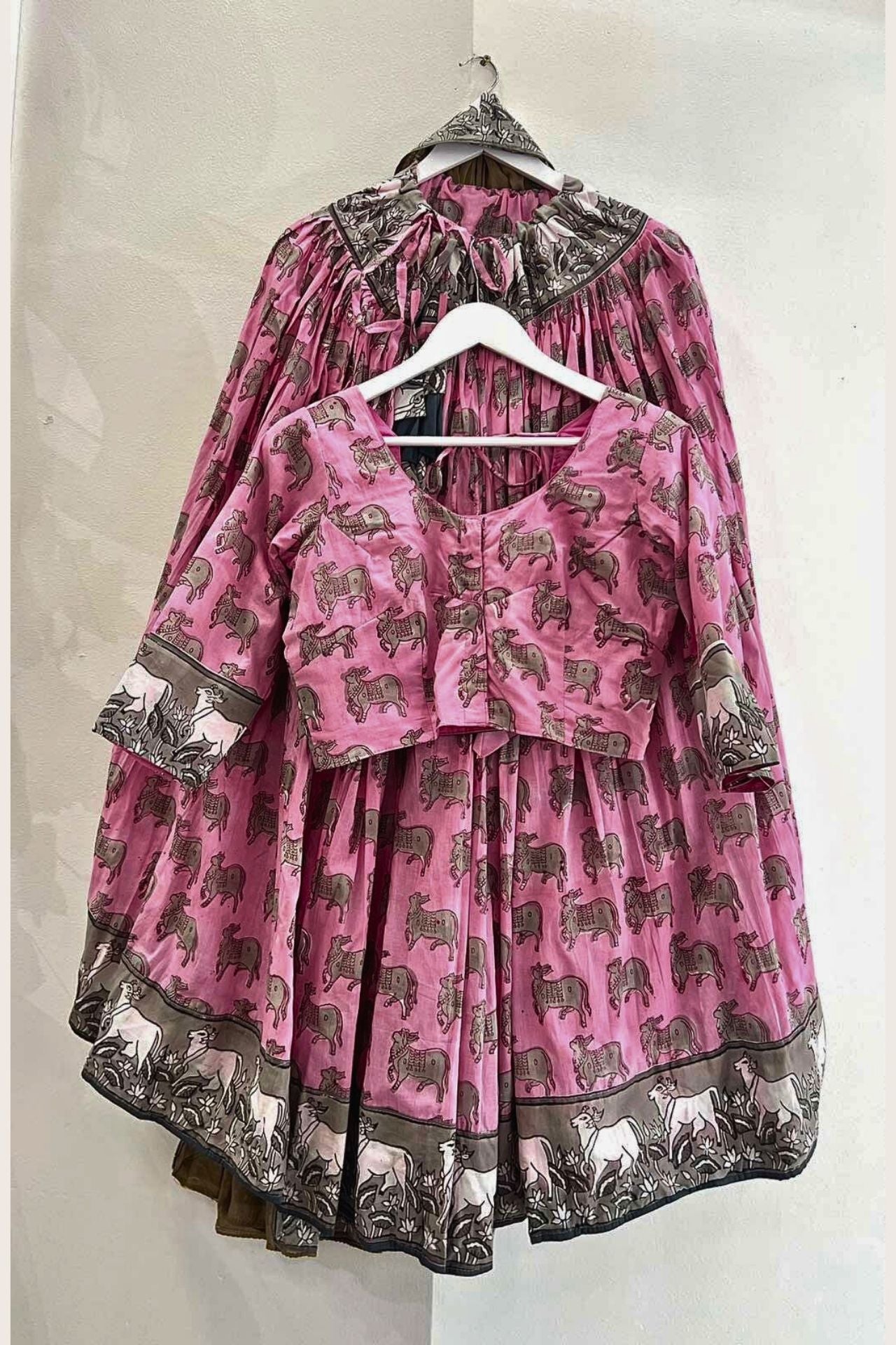 Cotton Gopi Skirt Blouse set In Pink