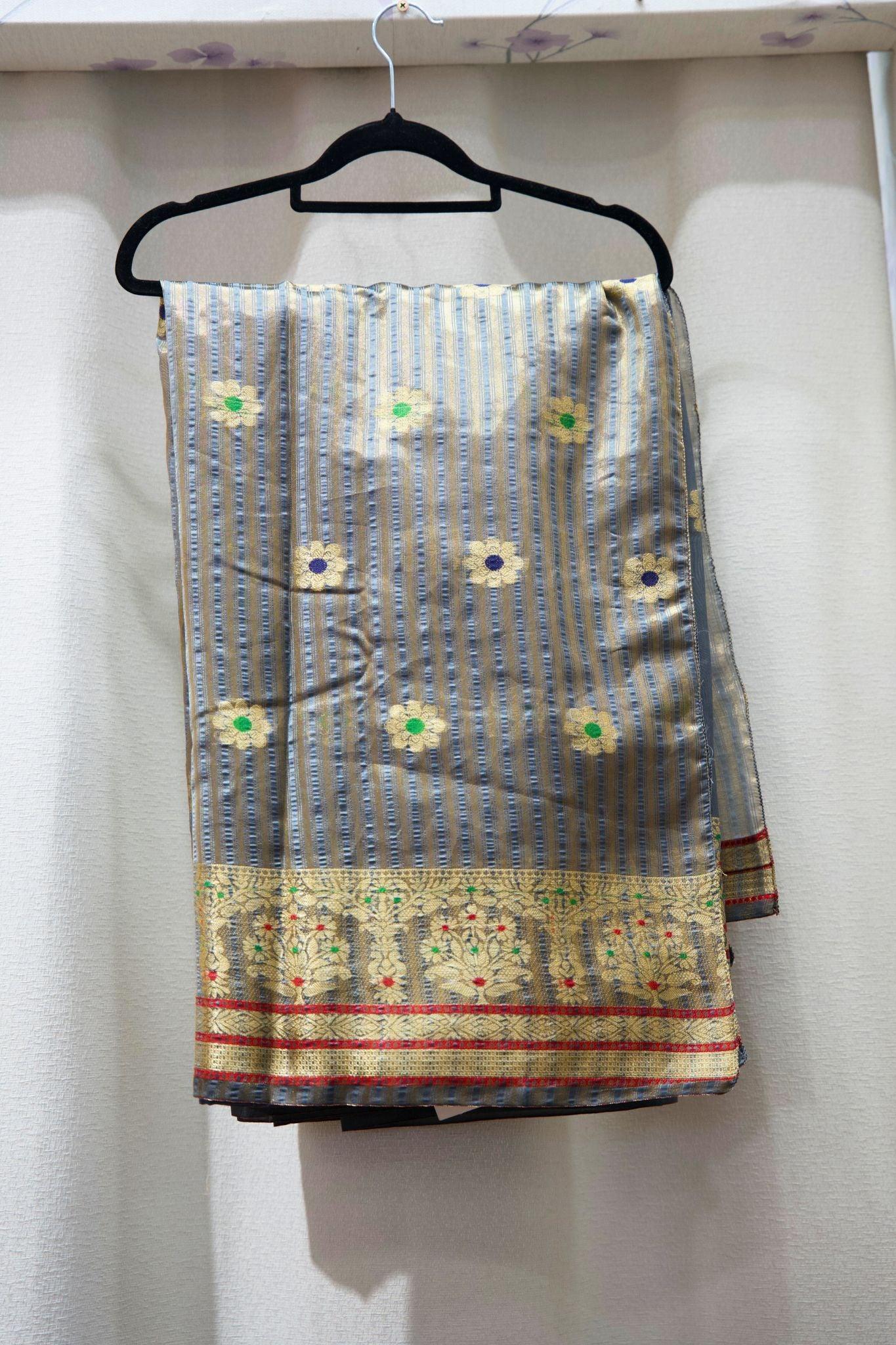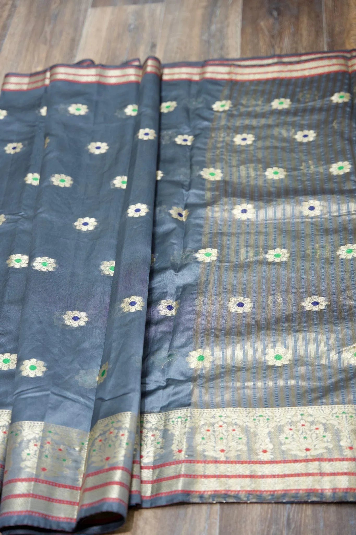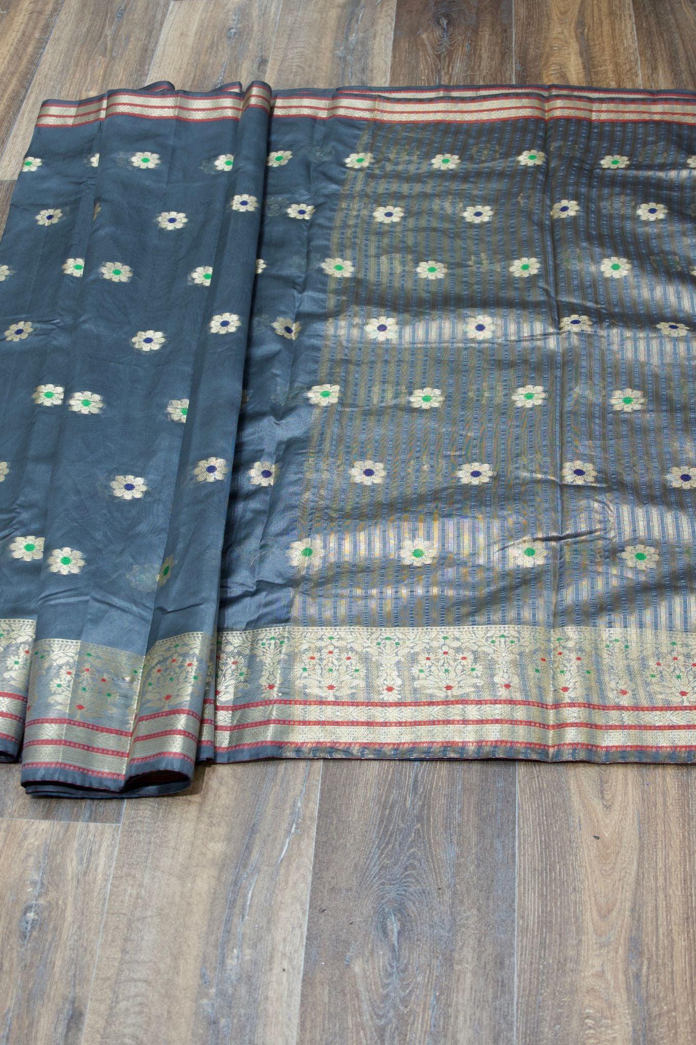 - Women's Soft Silk Grey Color Saree with gold Print all over the saree.