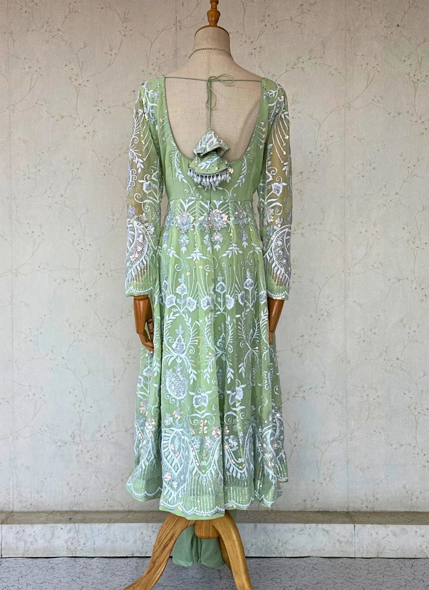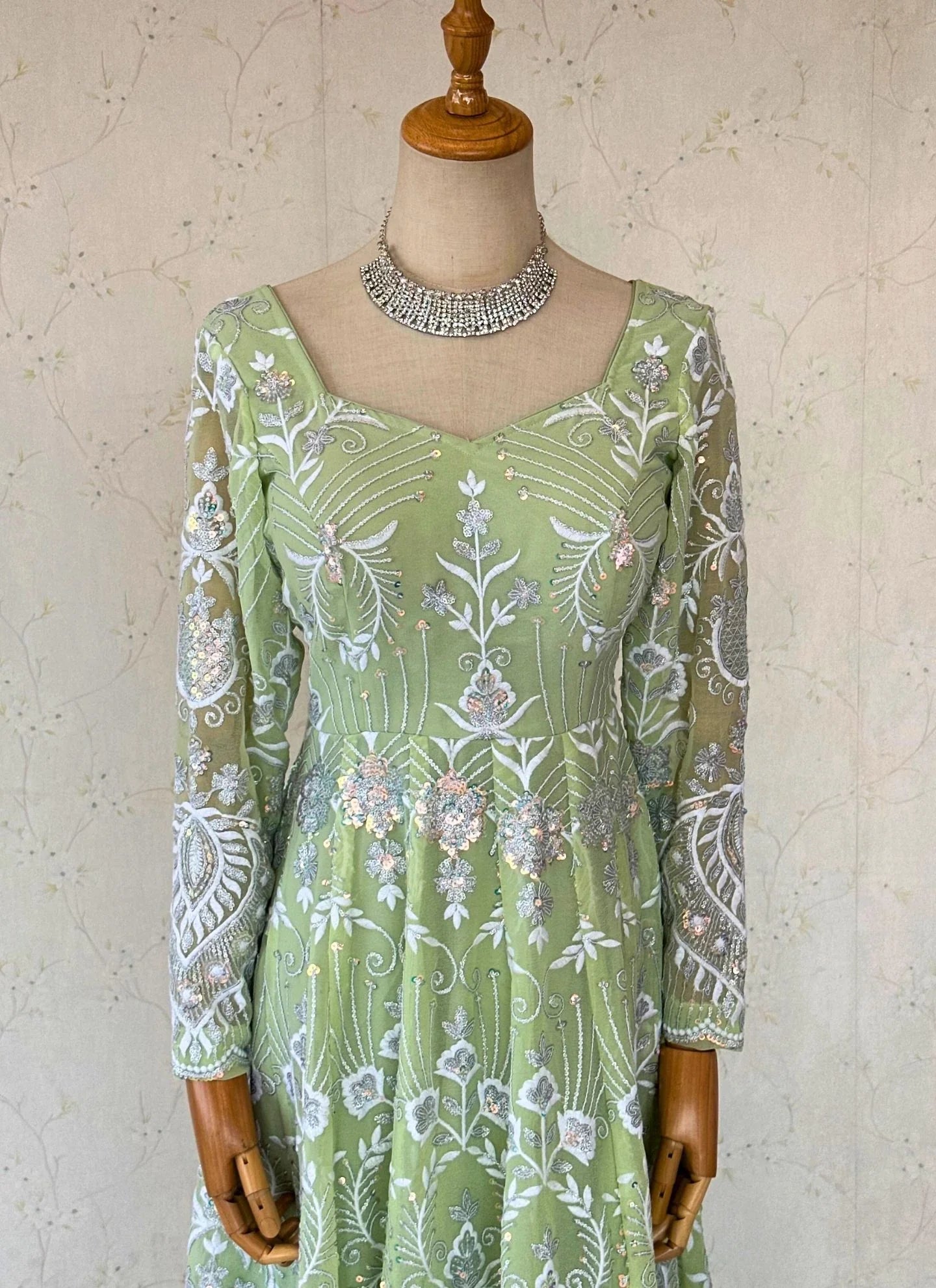 Lightgreen Anarkali Kurta With Thread Embroidered