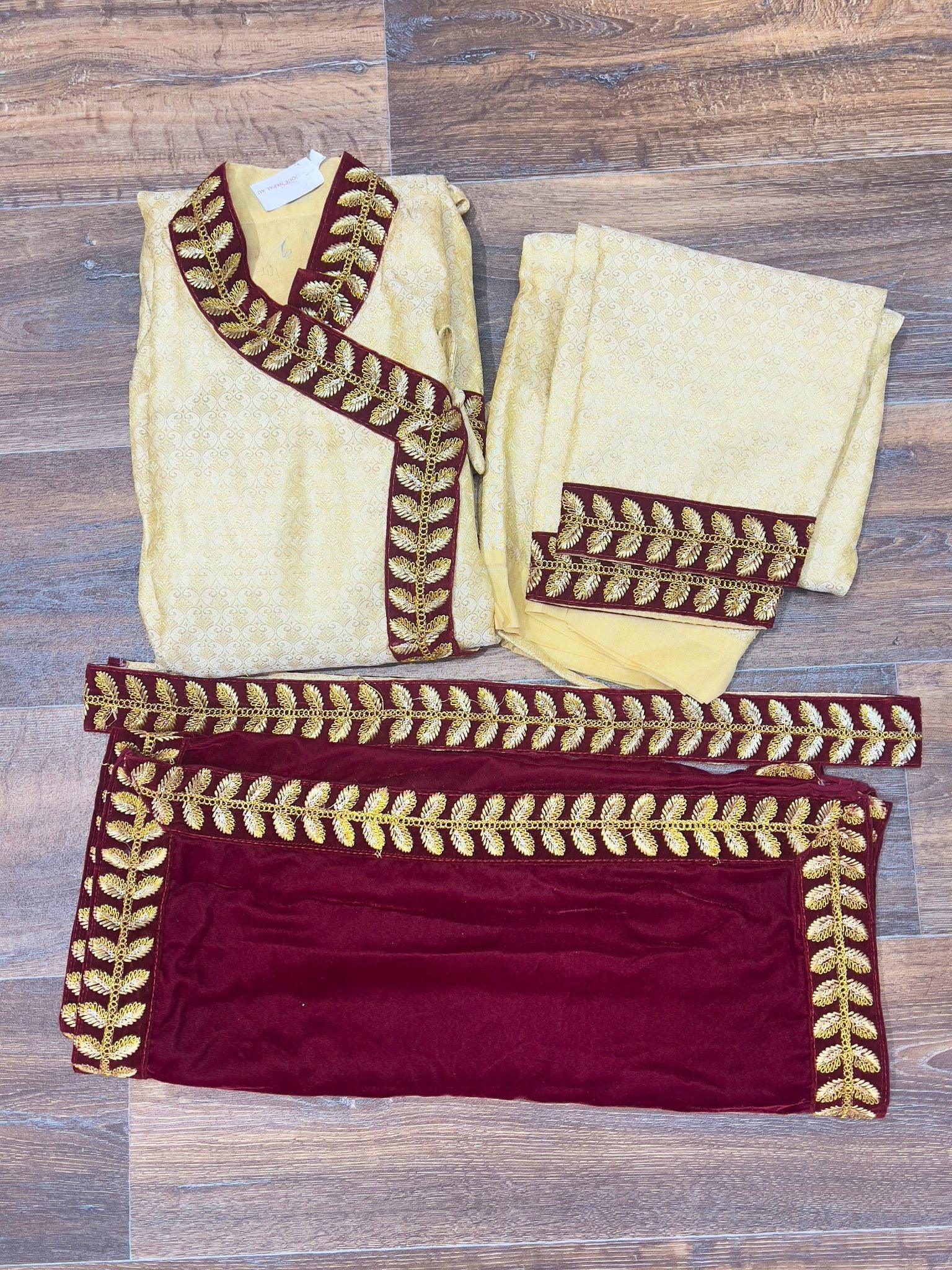Nepalese Men Weddings Dress Set In Bright Gold Color
